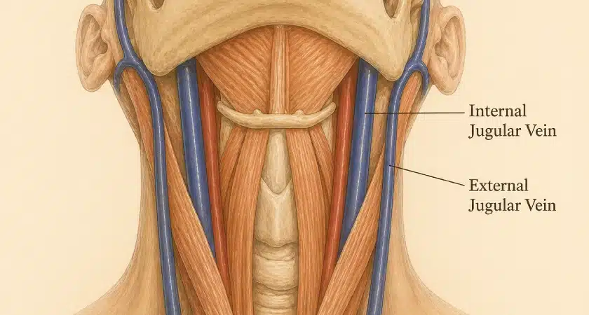 Every minute, roughly 750 ml of blood passes through the brain, delivering oxygen and removing waste products. The internal jugular veins are the main highway carrying that used blood — and dissolved metabolic waste — back toward the heart.